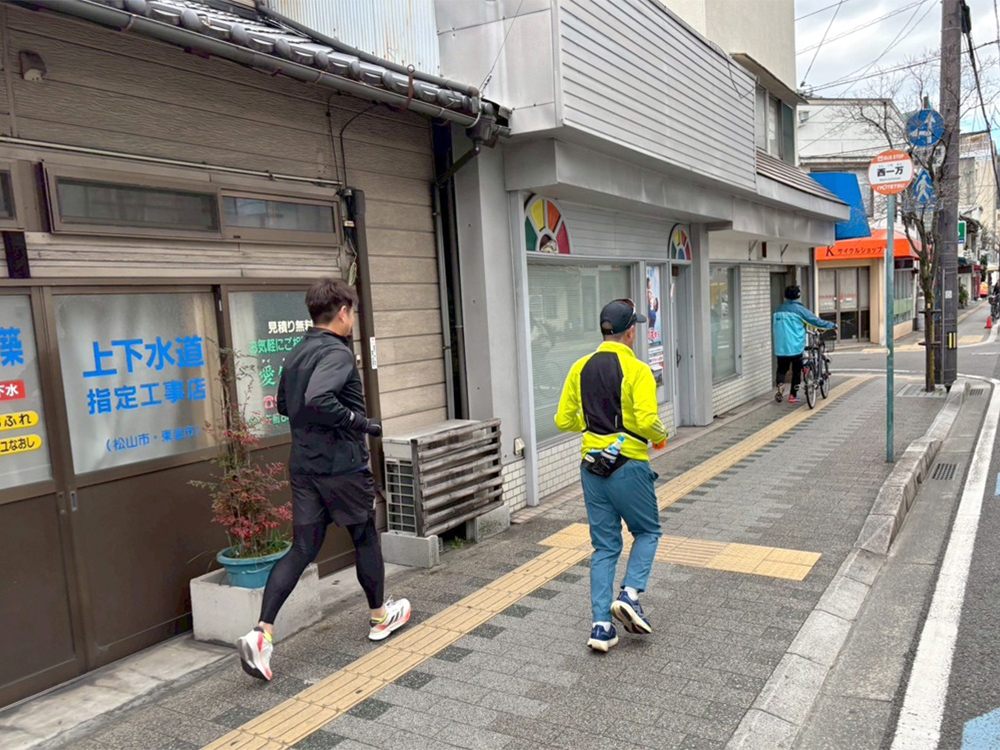 1月10日(土)、愛媛県松山市にて当社ランニング部が練習会を開催し、6名が2月に開催される愛媛マラソンのコースを走りました。本番と同じく10時に愛媛県庁前を出発し、それぞれの目標に応じて走る距離を設定しました。 この日は風がとても強く、向かい風の区間ではペースを保つのに苦労しましたが、フォームやペース配分を見直すきっかけになりました。風を想定したレースプランの大切さを改めて感じ、本番に向けての課題や対策も見えてきました。 引き続き愛媛マラソンに向けて練習に励みます。